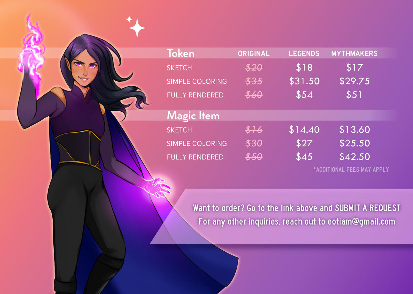 WIPs will be sent if I have any questions about the piece. On a similar note, please feel free to inform me of any changes you would like me to make during the process. Large changes will incur an additional fee.